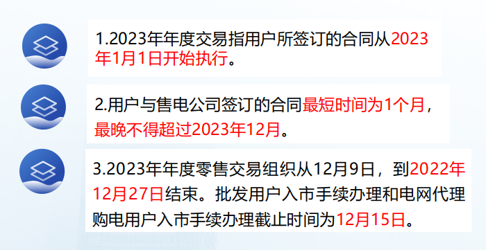 2023年"我"省電力市場交易即將開始,《浙江省電力中長期交易規則(2022年修訂版)》《關於做好2023年度浙江省電力市場化交易相關工作的通知》《浙江省零售市場管理辦法》這些文件關於零售用戶的重點,本文摘要告訴你!