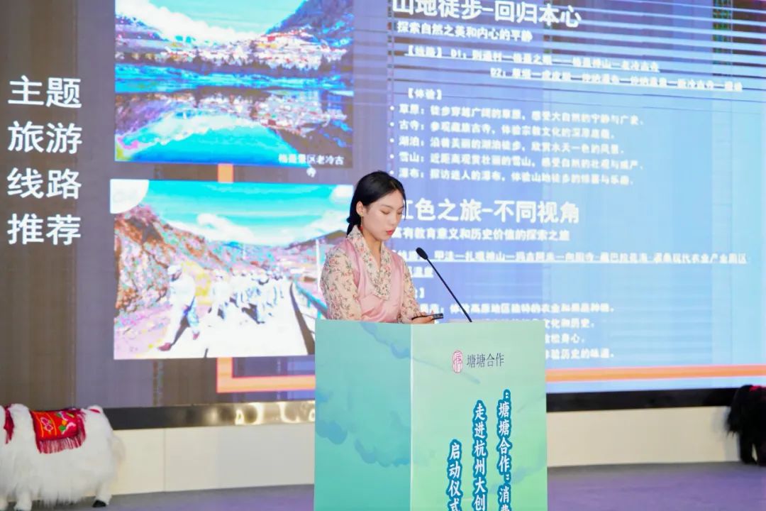 “今年,我們將活動地點選擇在大創小鎮的國際創博中心舉辦,首次將消費幫扶活動帶進園區,實現與企業的零距離互動交流。”啟動儀式上,錢塘新區管委會副主任、區政府黨組成員李俊在致辭中表示,她希望通過這次活動能讓園區的企業一起參與到對口支援國家戰略中來,通過“定向采購”“以購代捐”“以買代幫”等形式,助力“塘塘合作”,推動鄉村振興,共同幫助四川省特別是理塘的農特產品走出雪域高原。