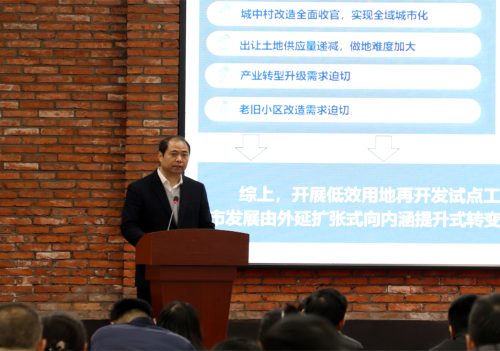拱墅分局局長孔源通過試點背景、政策解讀、實施細則、工作進展等方麵介紹了拱墅區低效用地再開發工作情況。