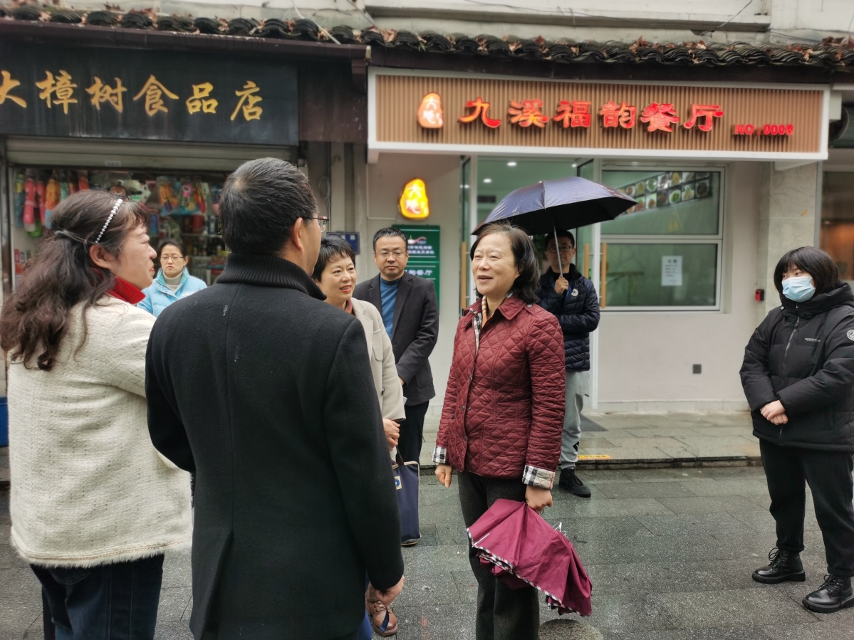 在西湖風景名勝區,李一青來到九溪社區,調研居民會客廳、共享洗衣房、九溪福韻餐廳、兒童休閑區等民生服務供給情況,對名勝區結合老舊小區改造,破解社區民生配套用房緊缺難題,做精做細“一老一小”優質服務方麵取得的成績表示肯定。她強調,要進一步關注百姓需求,結合西湖景區特色亮點,做好一老一小等民生保障服務。