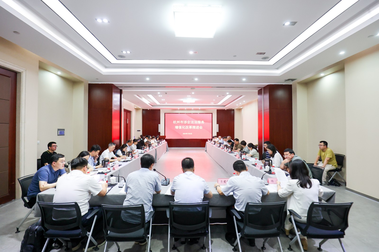 林林在總結講話中指出,要進一步推進涉企法治服務增值化改革,推動企業全生命周期“一件事”法治服務場景落地見效。一是找準坐標定位,把政務服務的要求作為法治服務增值化的出發點來抓。立足企業視角,掌握企業“急難愁盼”和涉法需求痛點難點堵點,將企業需求轉化為服務清單,按照“前端+後台”的模式切實配好隊伍,發揮好企業法治訴求限時閉環解決機製作用。二是正視困難問題,把市場主體的需求作為法治服務增值化的落腳點來抓。加強協調聯動,拓展法治服務陣地範圍,主動提供各類衍生服務、個性化服務,進一步挖掘法治服務內容,跨界、跨領域、跨行業整合法治資源,深化改革創新舉措。三是突出成果導向,把服務企業的實效作為法治服務增值化的著力點來抓。從企業實際辦事需求出發,以企業全生命周期各發展階段特點為導向,全麵提升涉企法治服務事項,迭代優化涉企法治服務流程,努力打造杭州涉企法治服務“金名片”。