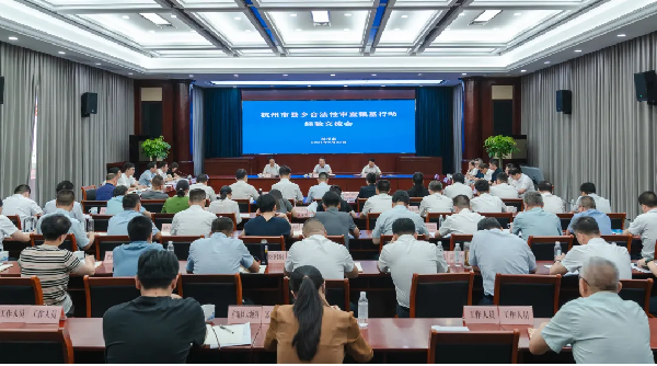 8月22日,杭州市縣鄉合法性審查強基行動經驗交流會在富陽區召開。副市長宦金元出席會議並講話,市政府副秘書長程曉東主持會議。