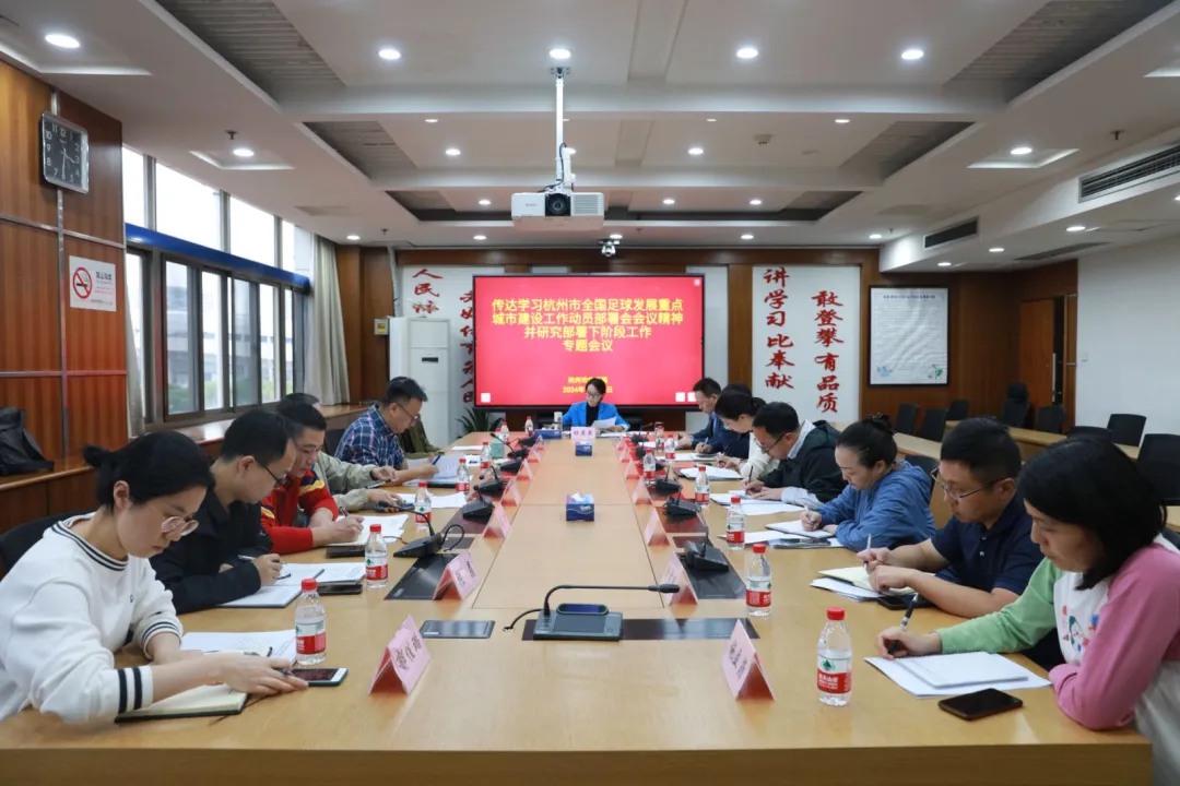 會議傳達了杭州市全國足球發展重點城市建設工作動員部署會會議精神,要求深入貫徹習近平總書記關於足球工作的重要指示批示精神,認真落實市委市政府關於足球發展重點城市建設的各項部署要求,持續深化足球機製體製建設,抓好足球青訓體係建設,構建完善城市足球競賽體係,提升足球專業人才質量,進一步統一思想、錨定目標,全麵加快杭州足球發展重點城市建設。