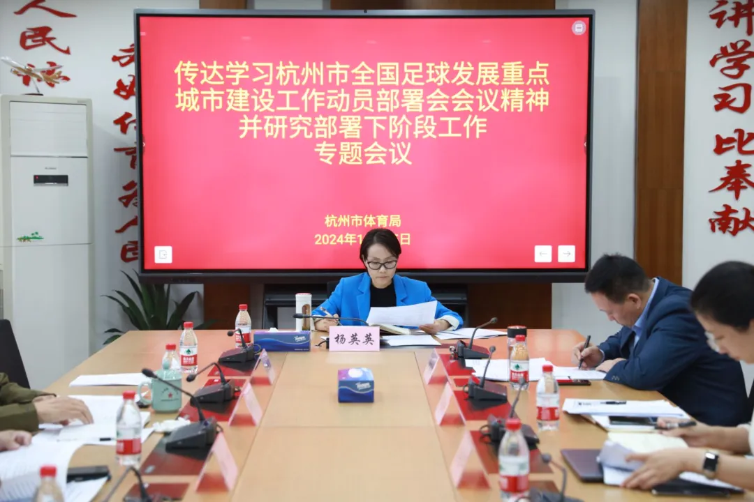 10月25日下午,杭州市體育局召開傳達學習杭州市全國足球發展重點城市建設工作動員部署會會議精神並研究部署下階段工作專題會議。杭州市體育局黨組書記、局長楊英英主持會議並講話。