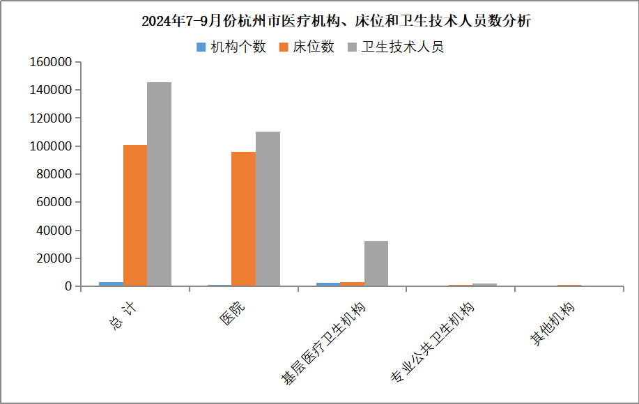 2024年7-9月杭州市醫療機構、床位和衛生技術人員數分析